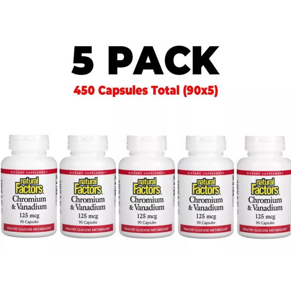Natural Factors, Chromium & Vanadium, 5 PACK, 125 mcg, 90 Capsules each x 5