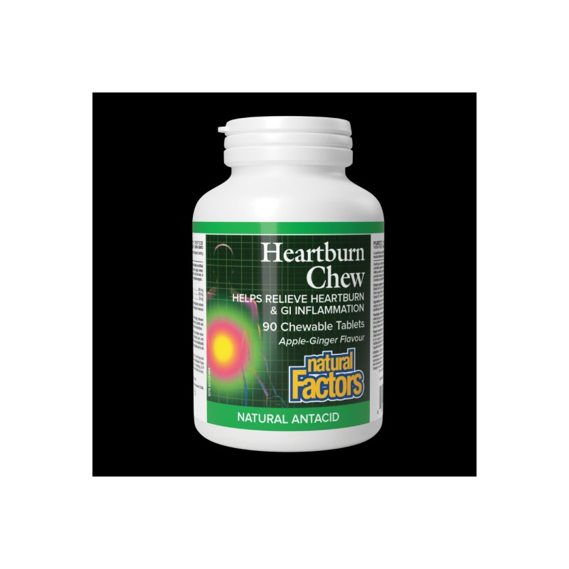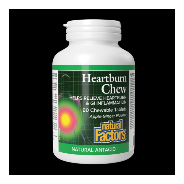 Natural Factors Heartburn Chew is formulated specifically for people who experience heartburn and minor GI inflammation by combining the soothing and protective properties of amla, deglycyrrhizinated licorice root (DGL), and slippery elm. This harmonious blend of clinically researched botanicals helps relieve minor inflammations of the gastrointestinal tract, abdominal pain, and burning sensation in the stomach. Amla (Phyllanthus emblica) is traditionally used in Ayurveda to help relieve symptoms such as heartburn and indigestion associated with hyperacidity/dyspepsia, and as a digestive tonic to increase appetite and aid in digestion. Licorice root has long been recognized for stimulating natural mucin production, the slippery protective coating of the stomach and intestines. DGL stands for “deglycyrrhizinated licorice,” meaning that this licorice root extract contains no glycyrrhizin and is suitable for people with high blood pressure. The inner bark of slippery elm is a traditional herbal remedy rich in mucilage. It thickens and forms a protective coating over mucous membranes when mixed with water. Taken together, amla, DGL, and slippery elm provide even greater support than when taken individually. Heartburn Chew is delivered in easy-to-take apple-ginger flavoured chewable tablets. Chewing helps mix the ingredients with saliva, allowing them to become active in the digestive tract. For the greatest effectiveness, chew one tablet between meals or 20 minutes before meals, up to three times daily.