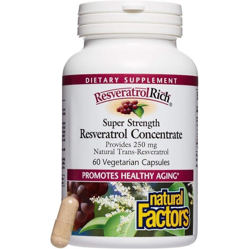 Natural Factors ResveratrolRich Super Strength Resveratrol Concentrate is a high potency compound extracted from the skins of red grapes grown in the Okanagan Valley of British Columbia, and from purified Japanese knotweed. Super antioxidant resveratrol protects against free radical damage to promote healthy aging and overall good health.
