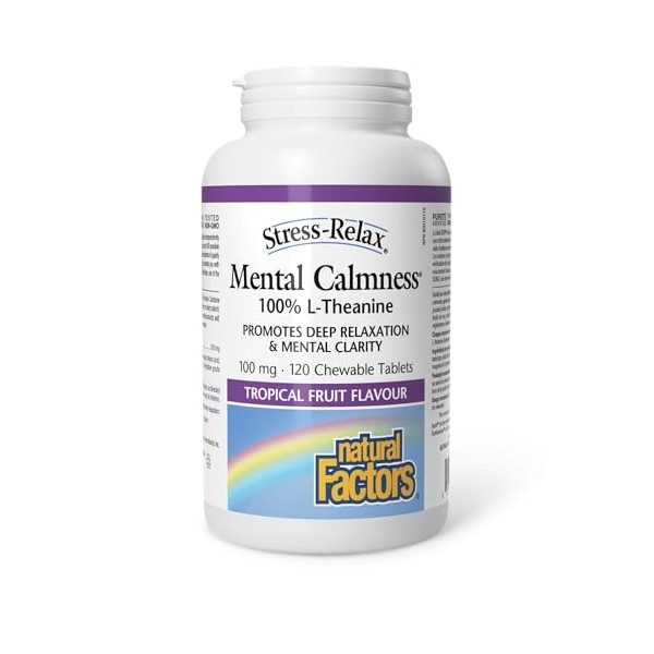 Natural Factors Natural Factors Stress-Relax Mental Calmness, 120 Chewable Tablets, Tropical Fruit Flavour, Suntheanine? L-Theanine 100 mg, Promotes Deep Relaxation and Mental Clarity, Proudly Canadian