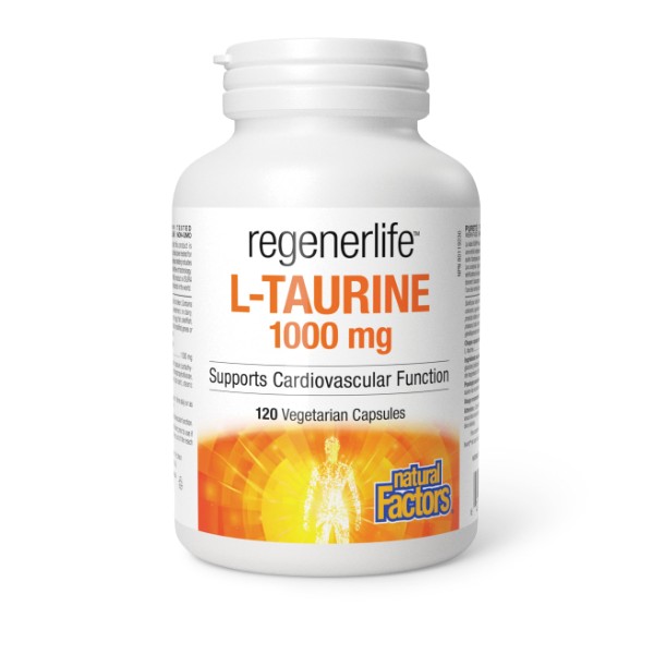 Natural Factors Regenerlife L-Taurine 1000 mg, 120 vegetarian capsules, Supports Cardiovascular Function