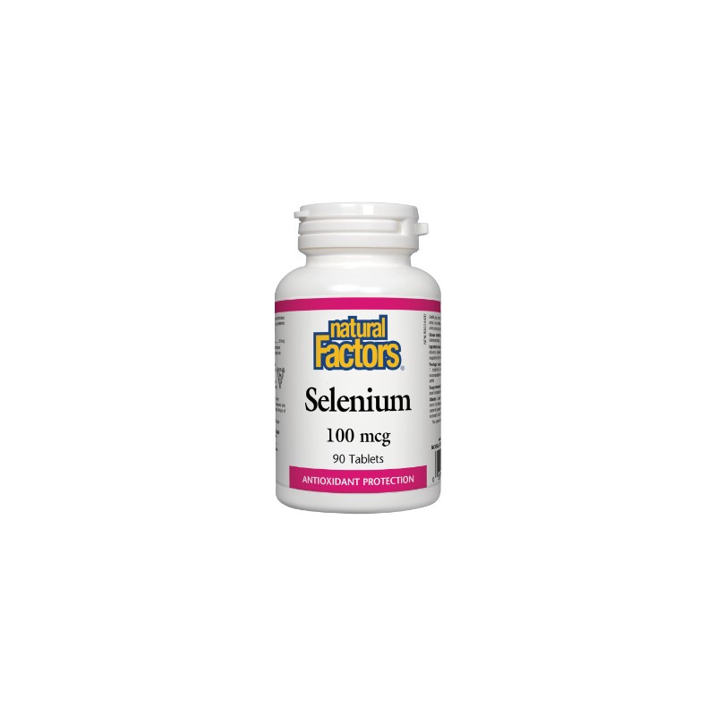 SELENIUM FROM NATURAL FACTORS 100 MCG MODERATE DAILY DOSAGE. As an antioxidant and mineral SELENIUM has many functions in the body. Its primary function is to protect cells (along with vitamin E) from damaging free radicals. Selenium is also needed for normal growth, fertility and detoxification. Natural Factors offers 100 mcg of Selenium per tablet derived from dead yeasts. In clinical trails low levels of Selenium have been linked to a higher risk of abnormal cell growth and degenerative diseases. [TABLET]