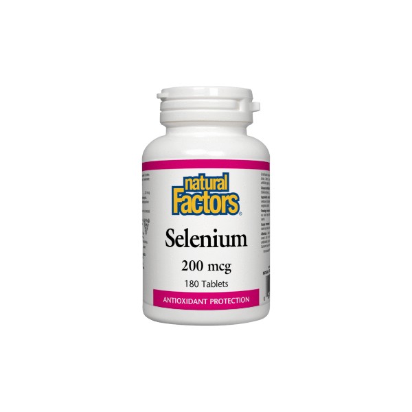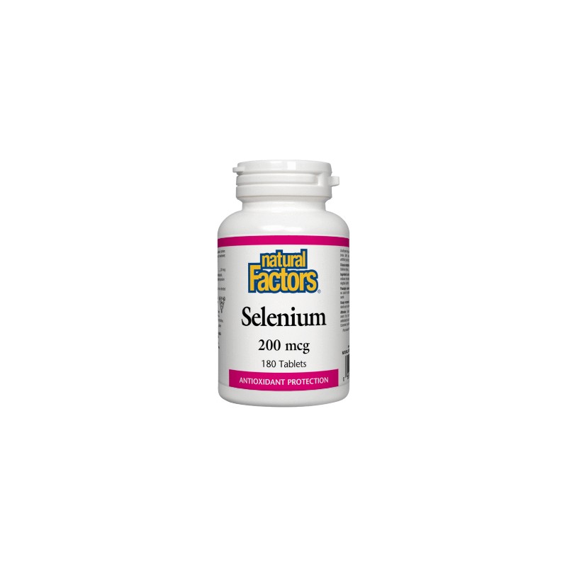 NATURAL FACTORS SELENIUM 200 MCG OPTIMUM POTENCY. As an antioxidant and essential trace mineral selenium has many functions in the body. Its primary function is to protect cells (along with vitamin E) from damaging free radicals. Selenium is also needed for normal growth, fertility and detoxification. Natural Factors provides 200 mcg of Selenium per tablet derived from dead yeasts. It is also an important conductor of glutathione peroxidase, a potent antioxidant found throughout the body. In clinical trails low levels of Selenium have been linked to a higher risk of abnormal cell growth and degenerative diseases. [TABLET]