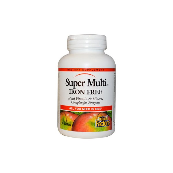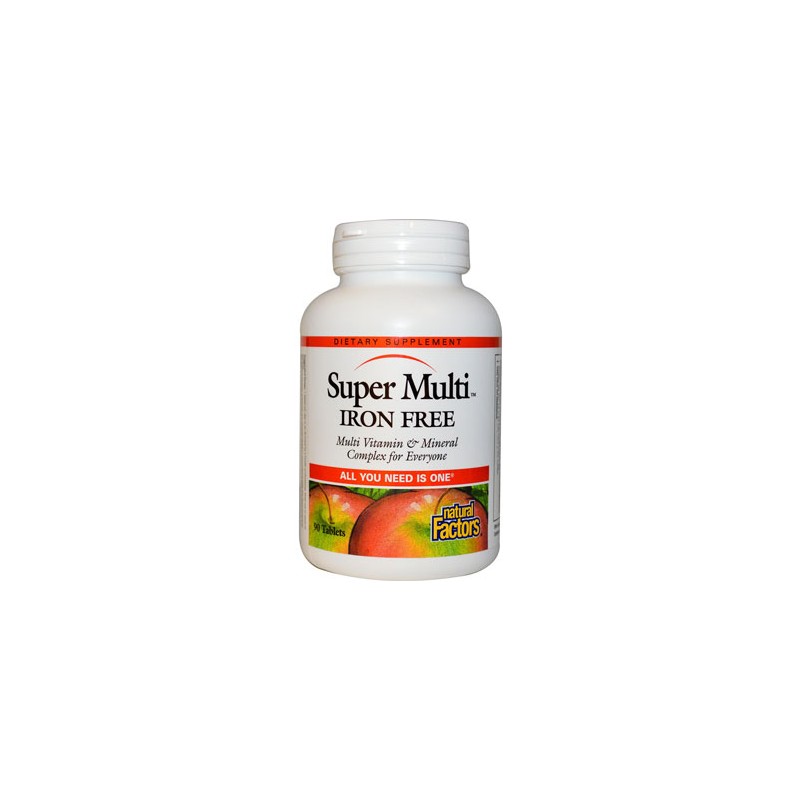 Natural Factors Super Multi Iron Free An excellent medium strength one-per-day multi vitamin/mineral tablet. This formula is ideal for men, menopausal women and others not requiring additional dietary iron. New research suggests that few people require more iron than they get in food.