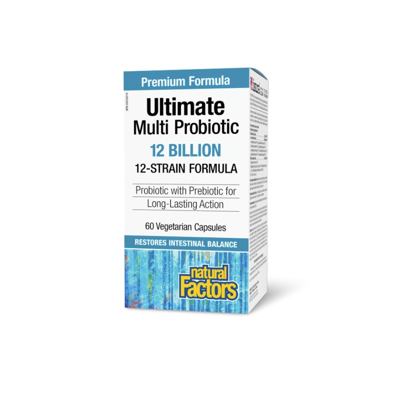 Natural Factors Ultimate Multi Probiotic 12 Billion, 12-Strain Formula, 60 Vegetarian Capsules, With Added Prebiotic for Long-Lasting Action, Restores Intestinal Balance, Proudly Canadian
