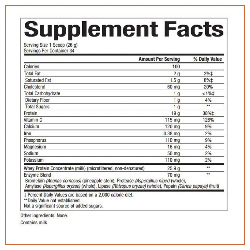 - Natural fitness fuel: Give your workout a boost with high quality whey protein concentrate. Packed with 18g of protein, 3g of carbohydrates, 2.5g of fat and 110 calories