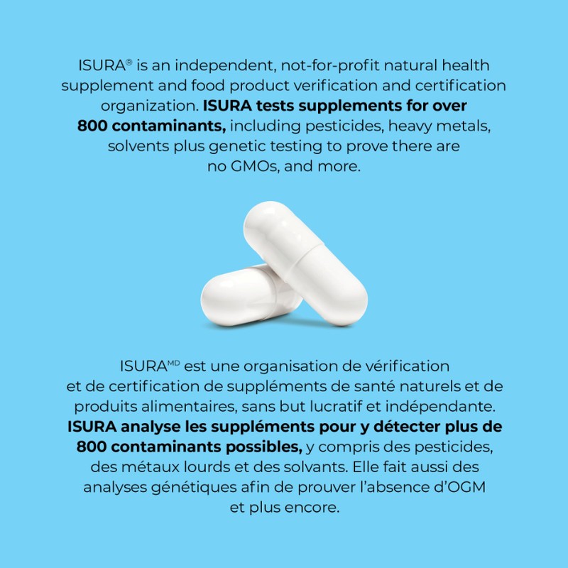 THIRD PARTY TESTING - ISURA VERIFIED CLEAN: The ISURA seal is your assurance that this product is independently verified as clean and safe, and has been tested for up to 800 possible contaminants. This product is ISURA verified clean, one of the highest testing standards in the world.