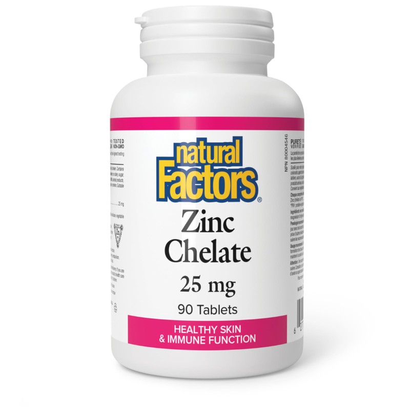 Natural Factors Zinc Chelate 25 mg, 90 Tablets, Healthy Skin & Immune Function, Proudly Canadian
