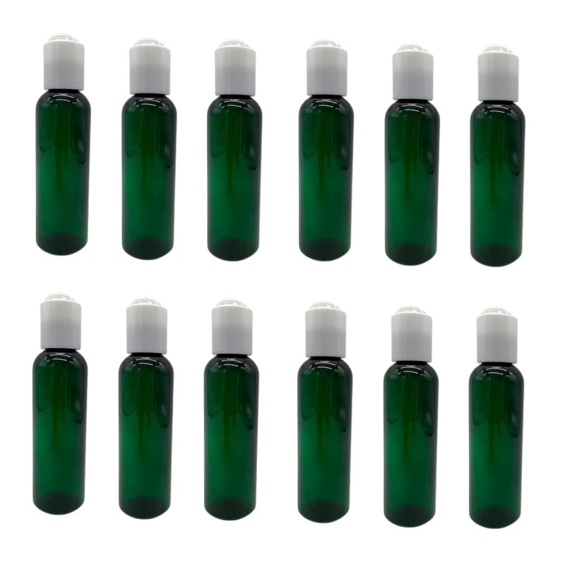 - Package Include: 12 Pack 2 oz each Green Plastic Bottles with White Press Down Disc Cap