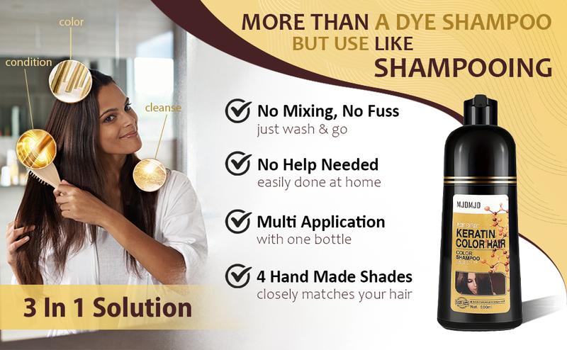 Natural Golden Brown Hair Dye Shampoo 3-in-1 16.9 FL OZ, Add Keratin ,Semi-permanent Hair Color Shampoo For 100% Gray Hair Coverage, Long Lasting Hair Color, Easy to Use,Ammonia Free No Harsh Chemicals For Adults Haircare - Colour: Dark Brown