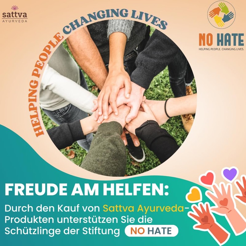 - Joy of help: By purchasing Sattva Ayurveda products, you support the protégés of the "NO HATE" foundation, which supports people who are hungry and lonely. Every week, volunteers serve warm food and spend time with them
