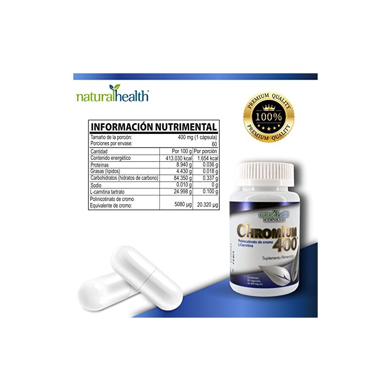 NATURAL HEALTH Naturalhealth Chromium 400 Con L-Carnitina - 60 Capsulas - Producto Original de Alta Calidad, Entrega Rápida y Segura, Garantía Incluid