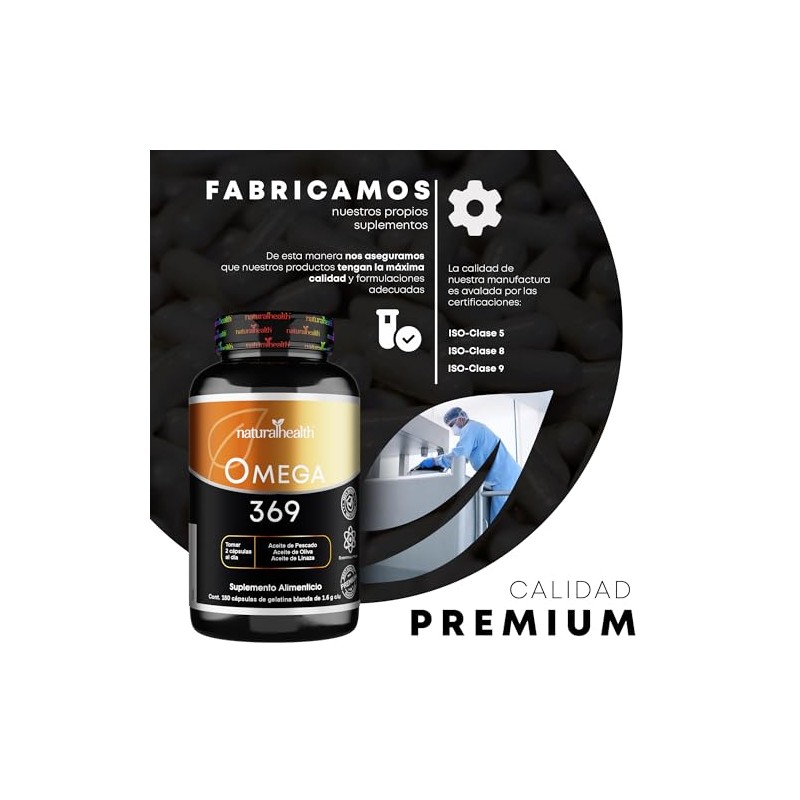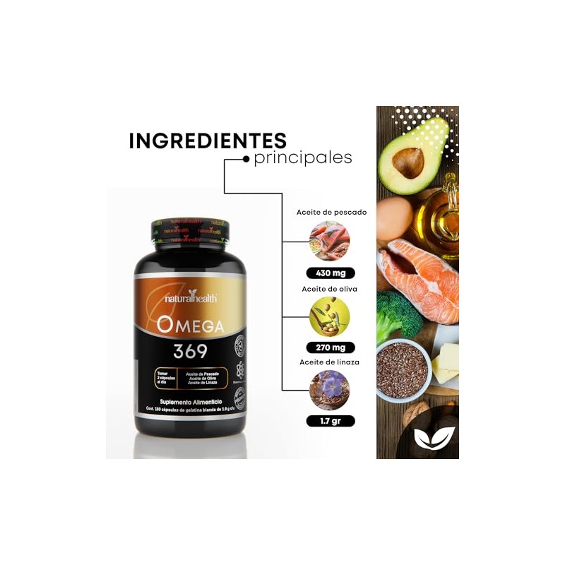 Natural Health. Omega 369. Frasco con 180 Cpsulas de 1.6 g. Ingredientes naturales - Producto Original de Alta Calidad, Entrega Rápida y Segura, Garan