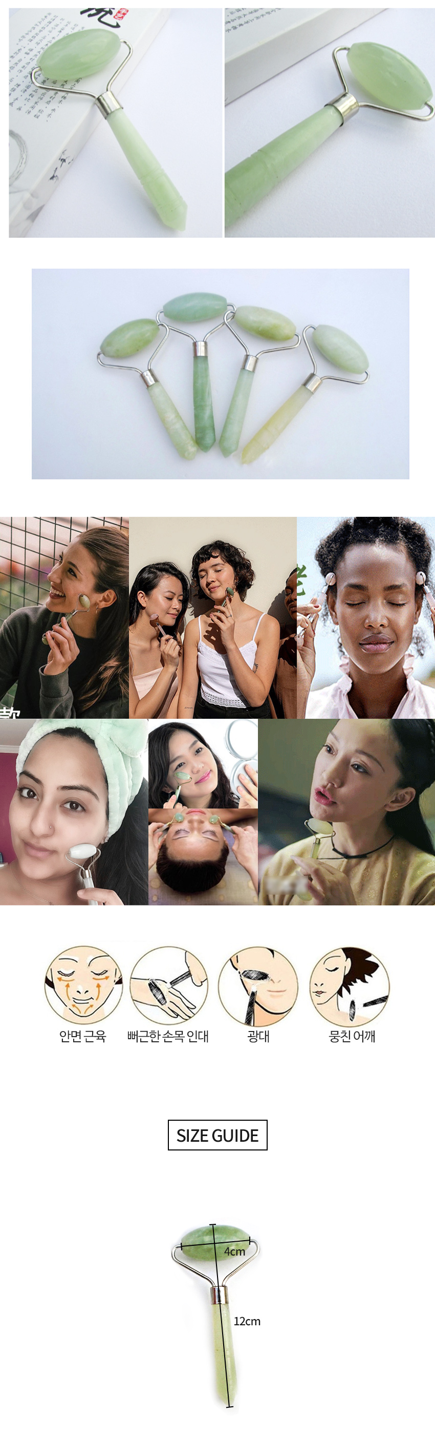 Natural Jade Gua Sha Roller & Massage Tool 1 type 3ea