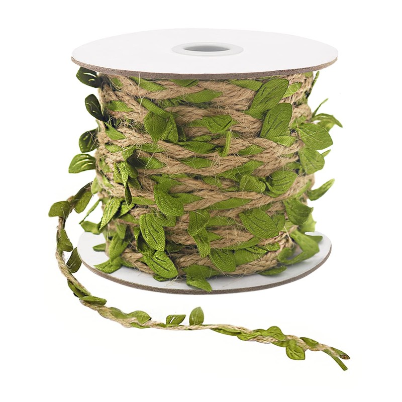 - Premium Natural Twine: Our jute twine is made of polyester, high quality jute fabric. Each roll of burlap twine with leaves measures 66 feet (20m), and each leaf measures 0.39 inch (10mm)