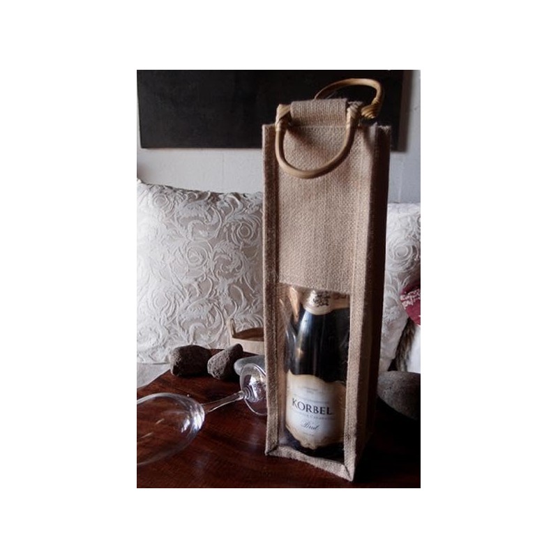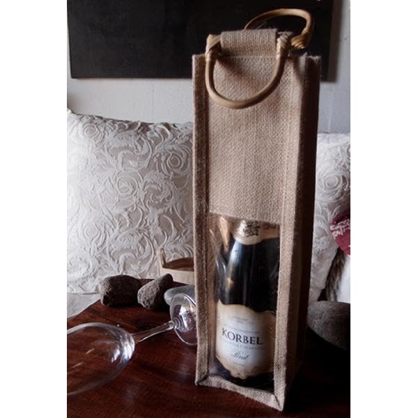 burlapfabric.com Natural Jute Wine Bags with Wooden Handles - 5 Pack