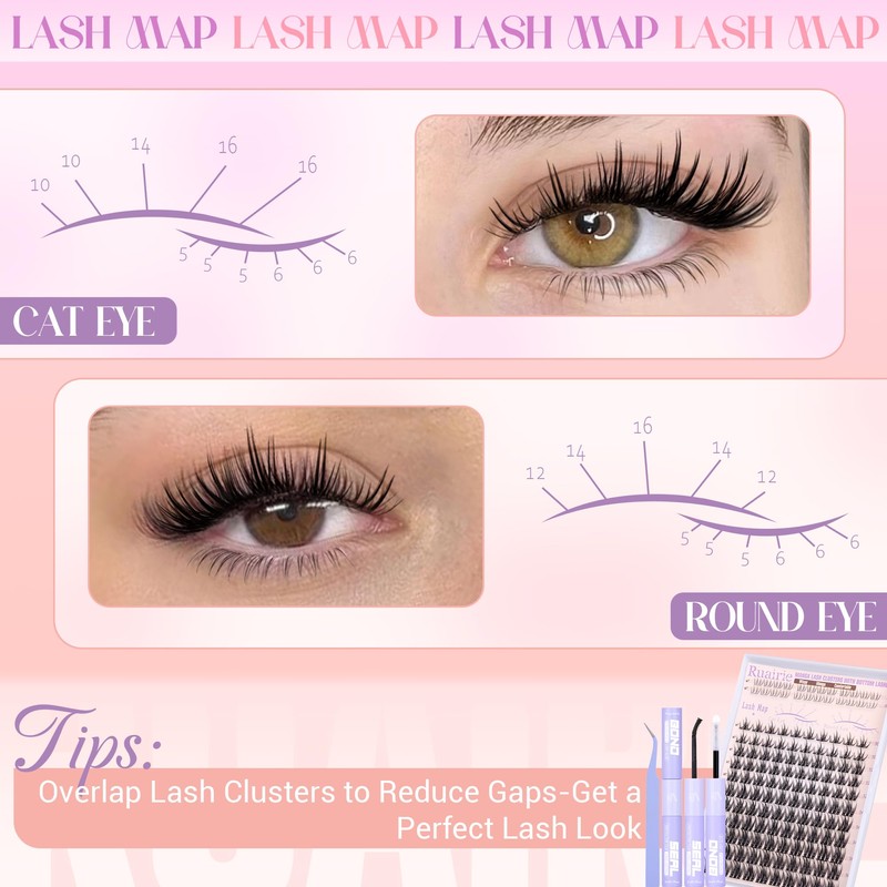 - 4.Beginner-friendly and Easy to Use: Ruairie lash extensions are available in lengths from 10-16mm, allowing you to create lash clusters looks according to your eye shape and makeup. The lashes clusters kit includes bond-seal and tweezers, allowing you to achieve a perfect eyelash extension look in 5 minutes.