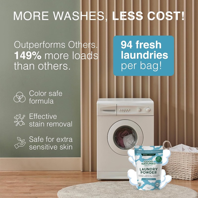 | Natural Laundry Detergent Powder & Washing Soda for Tough Stains & Odors | Hypoallergenic, Safe for Sensitive Skin | Biodegradable & Eco-friendly | Unscented | 47 oz 94 Loads