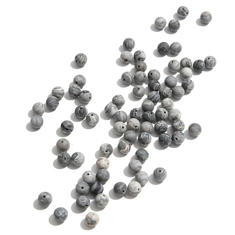 Natural Matte Stone Beads 6mm Grey Map Round Gemstone Beads Spacer Charm Energy Healing Beads DIY for Bracelet Necklace Earrings Jewelry Making