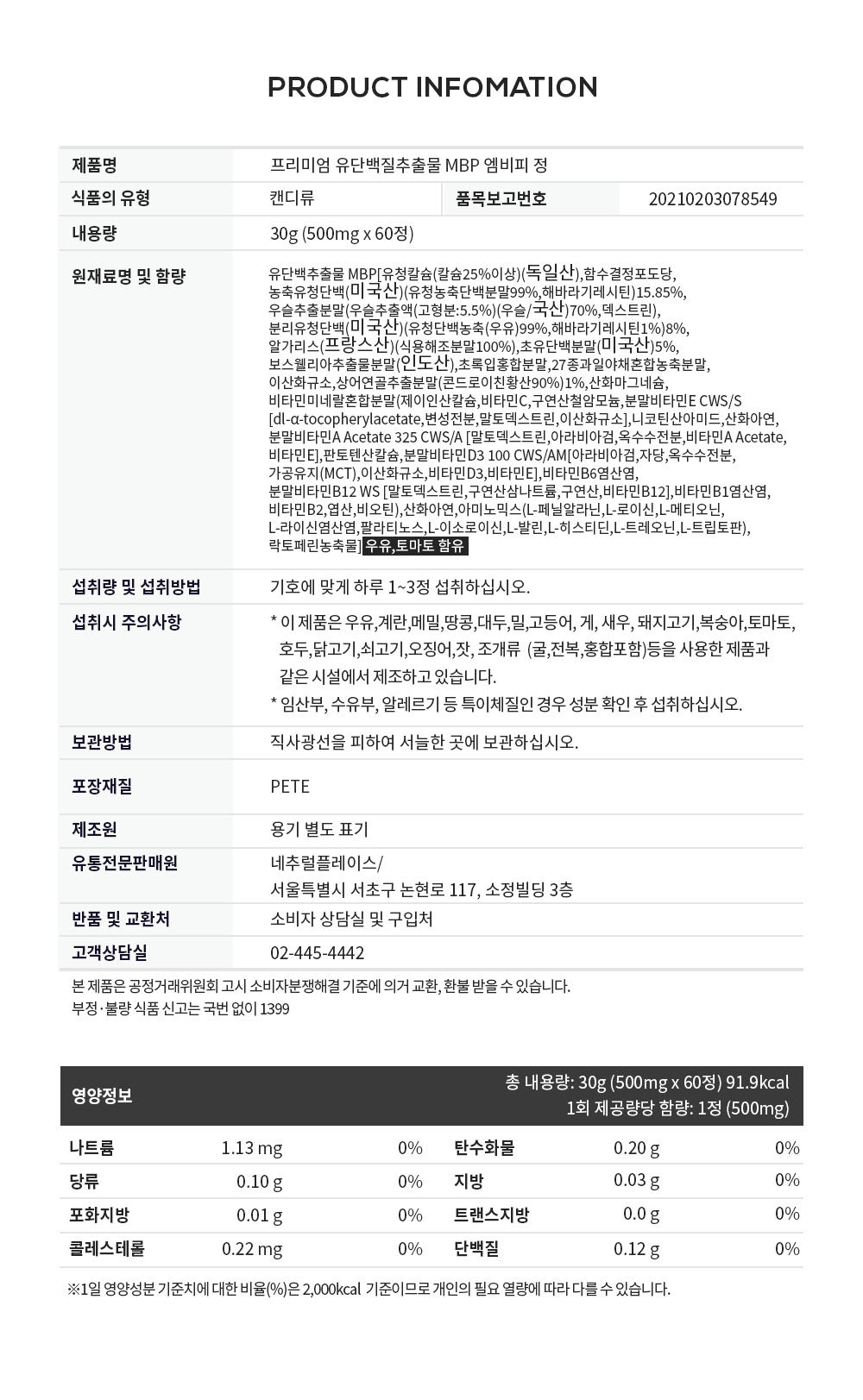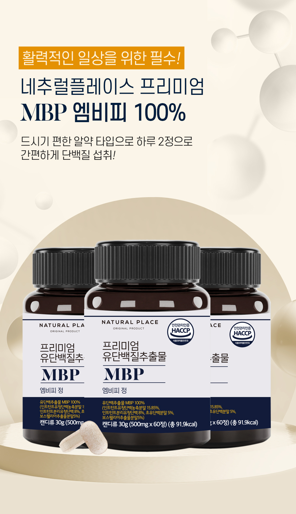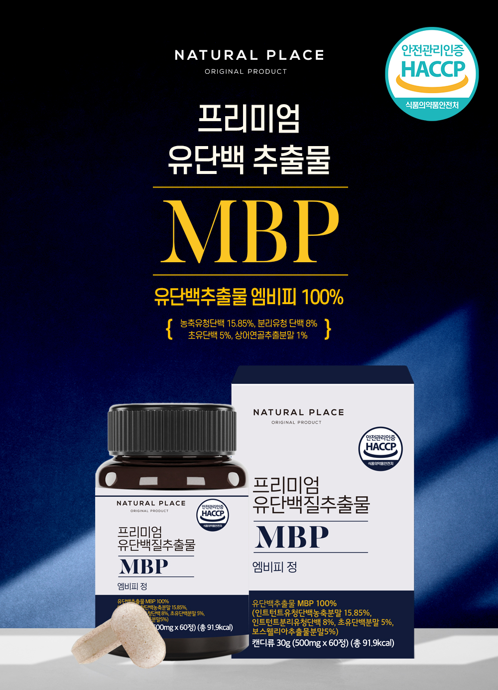Natural Place [On Sale] Natural Place Premium MBP MPB Whey Protein 500mg x 60 tablets, 5 bottles / 네추럴플레이스 [온세일]네추럴플레이스 프리미엄 MBP 엠피비 유청 단백질 500mg x 60정 5병