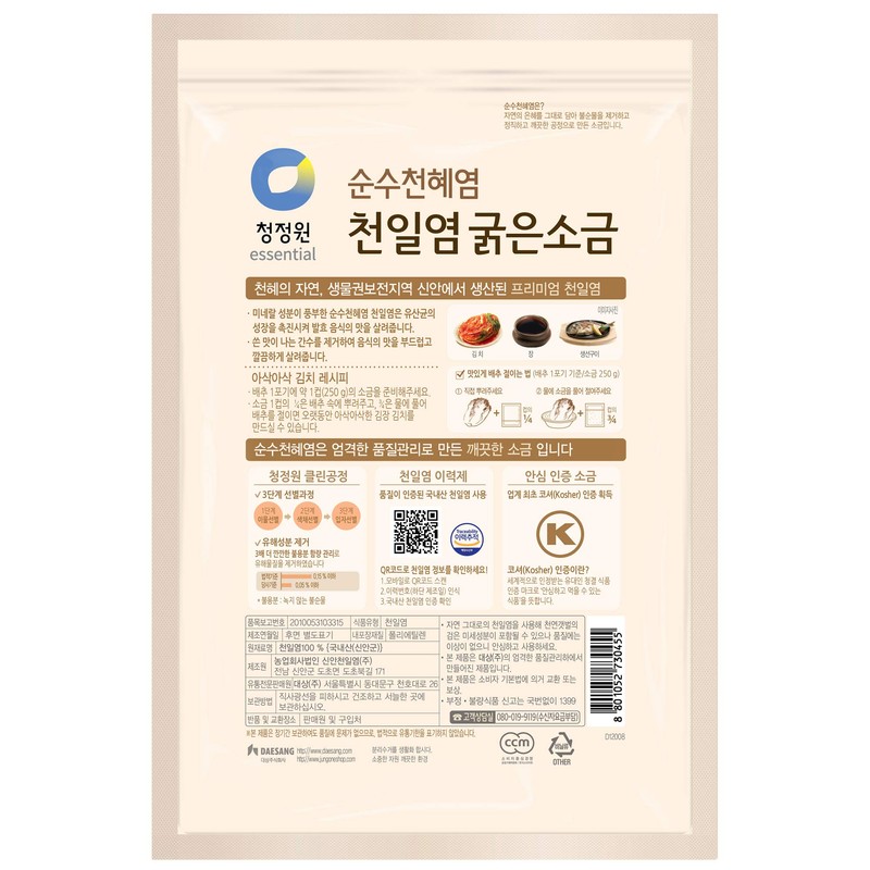 Chung Jung One Korean Premium Natural Coarse Sea Salt for Kimchi Brining, the Jewel of Sinan Island, 1kg, (2.2lbs) 1 Pack