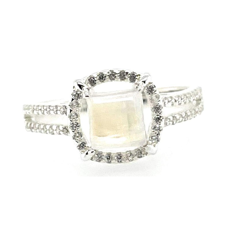 Natural Rainbow Moonstone 925 Solid Sterling Silver Engagement Ring Size 5, 6, 7