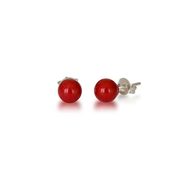 Natural Red Round Coral Stud Earrings 6mm 925 Silver, Coral