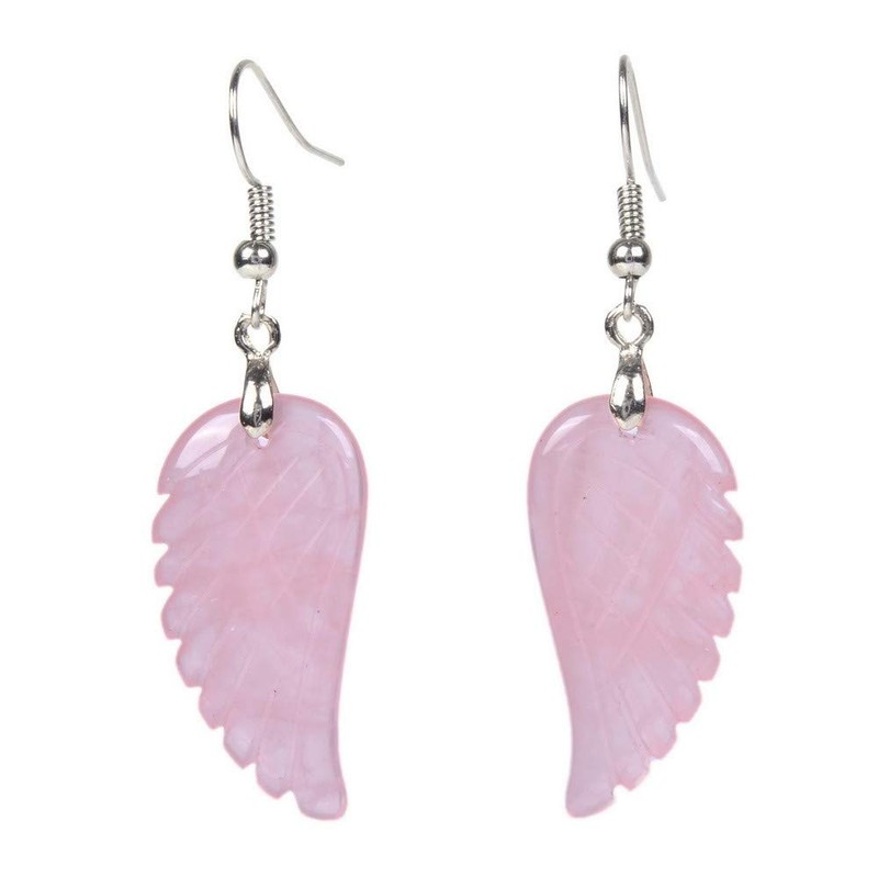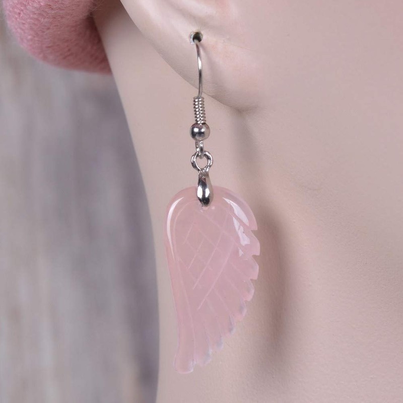 Natural Rose Quartz Gemstone Crystal Healing Reiki Chakra Handmade Angel Wing Dangle Earrings