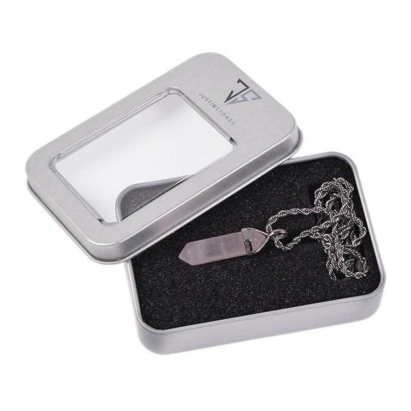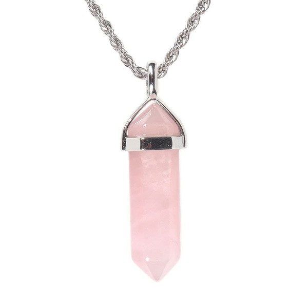 - Package Includes: 1pc Natural Rose Quartz Pendant + 1pc 20" Stainless Steel Rope Chain + 1pc Iron Gift Box