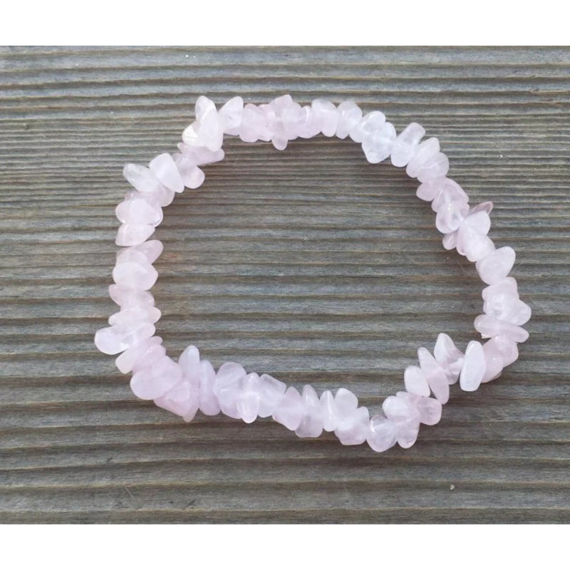 NATURAL ROSE QUARTZ STONE GEMSTONE STRETCHY CHIP BRACELET