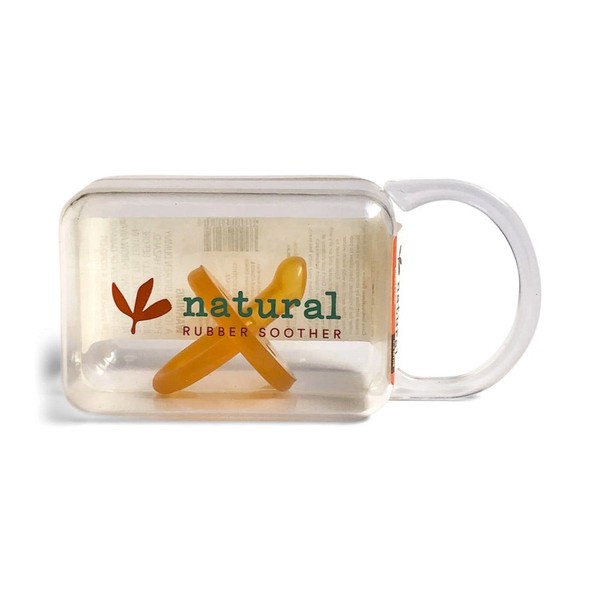 One(1) Orthodontic Natural Rubber Soother in a reusable case allowing for convenient and hygienic storage.