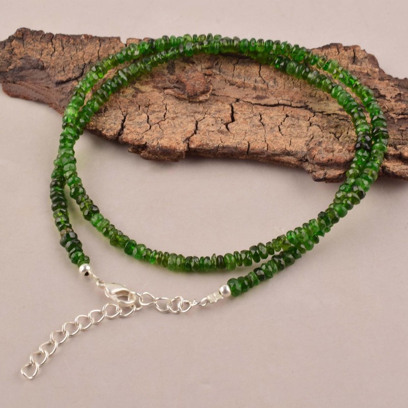 Natural Russian Chrome Diopside Faceted Rondelle Beaded Necklace Gemstone Jewelry, Gift For Her, Silver Jewelry for Women 18 Inch Chain, Christmas Gift