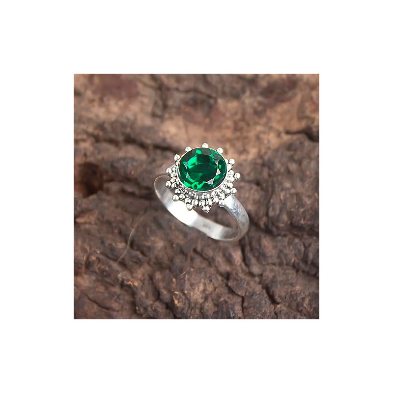 Natural Semi Precious Gemstones Ring Handcrafted 925 Stamped Silver Statement Women's Ring Birthday Gift, Christmas Gift Gemstone Jewelry For Her (Created Emerald, 8)