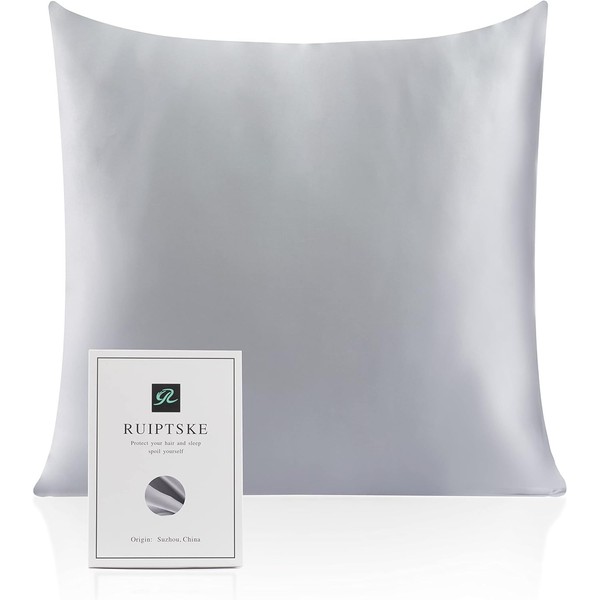 Natural Silk Pillowcase Hypoallergenic 22 Momme 100% Silk 600 Thread Count with Concealed Zip (Grey, 80 x 80 cm)