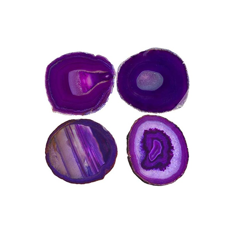 Natural Sliced Dyed Agate Coaster with Rubber Bumper Set of 4 (Q. 1 Purple, 3.5-4"), By JIC Gem