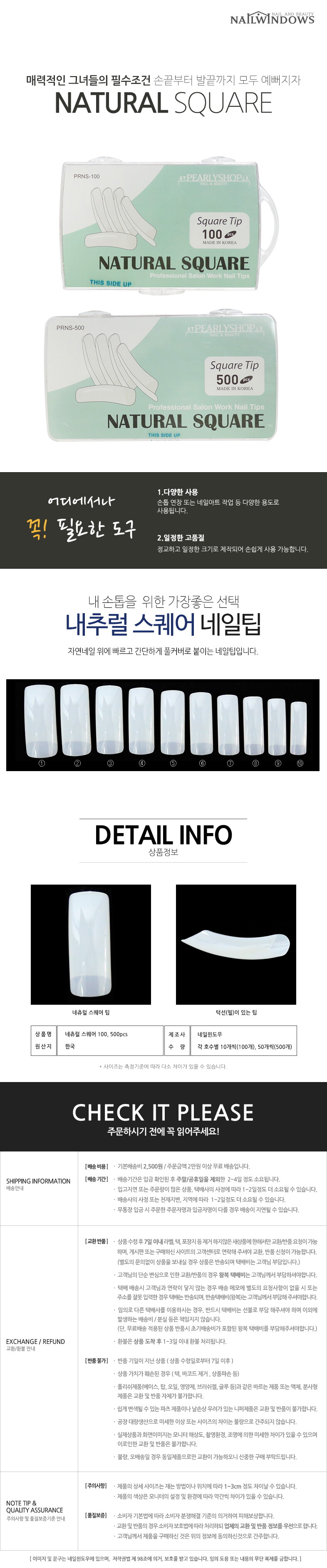 Natural Square 100pcs artificial nails/nail tips / 네츄럴 스퀘어 100pcs 인조손톱/네일팁