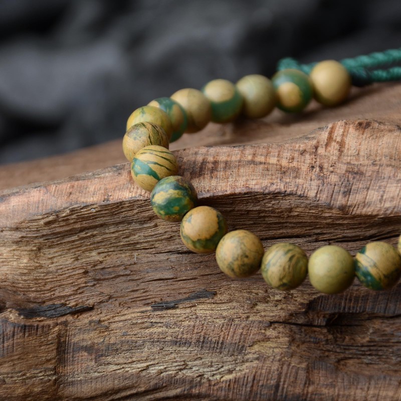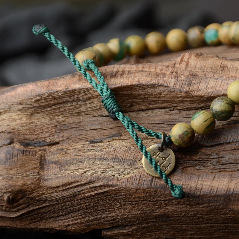 Natural Stone Healing Bracelet, Adjustable Green Beaded Design, Waterproof Wax String (Green Loong Jasper, /)