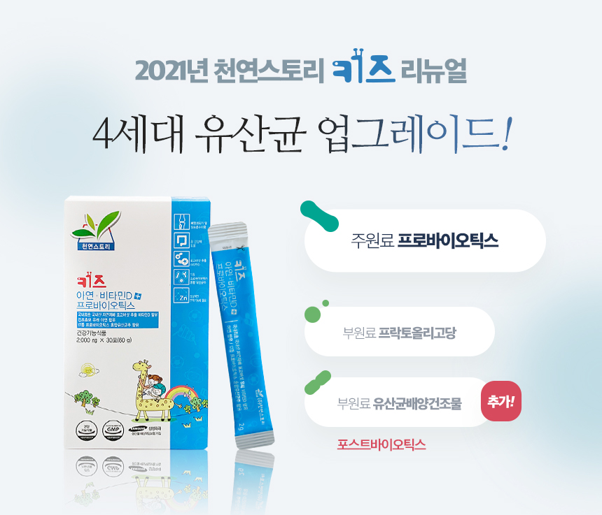| 제품명 | 천연스토리 키즈 아연+비타민D+프로바이오틱스 |