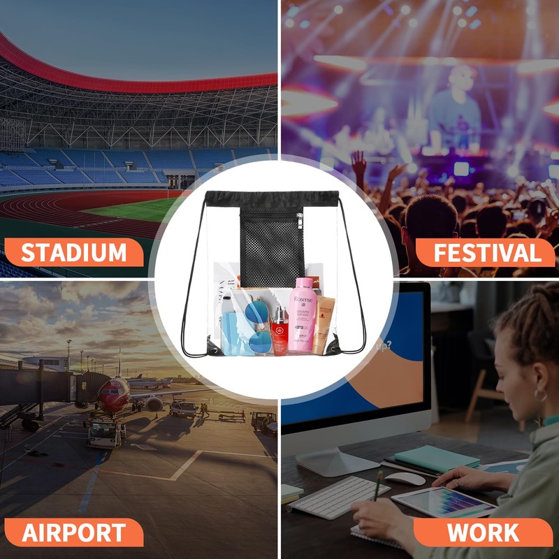 - This transparent drawstring bag allows you to see where things are placed at a glance, making it easy to take them out quickly, saving you more time in case you need to go through security