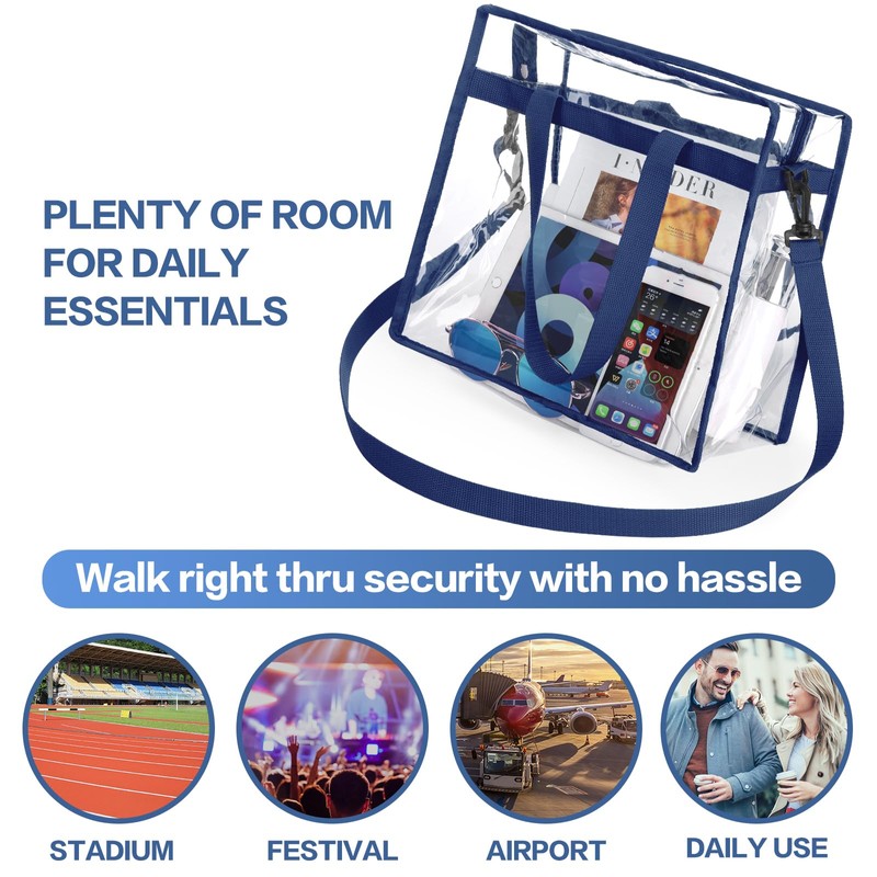- WIDE RANGE OF USES - Can be used for a wide variety of different purposes. Suitable for travel, beach, clear lunch bags, women clear diaper bags, office workers, sports events and concert