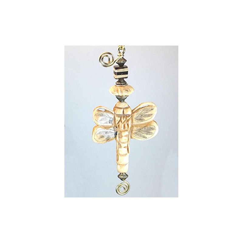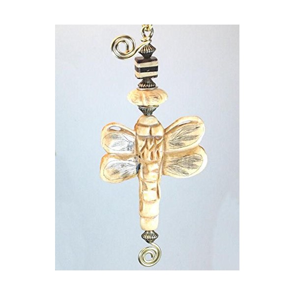 - Hand-carved, non-endangered natural bone dragonfly and bead