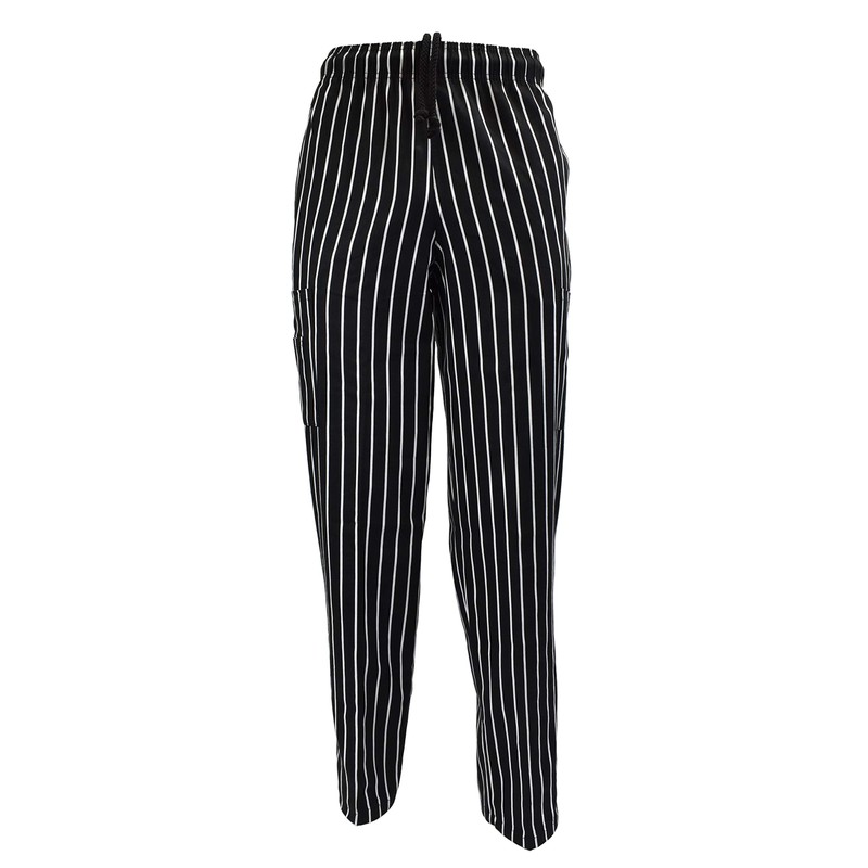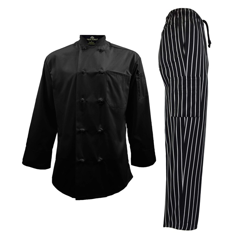 Natural Uniforms Men's Chef Uniform Set - Chef Coat and Cargo Pants Set (Small, Black Coat/Chalkstripe Cargo Pants)
