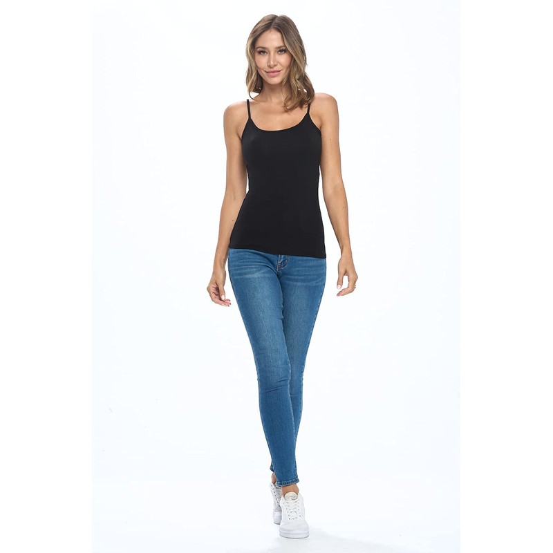 Natural Uniforms Women's Basic Camisole with Adjustable Spaghetti Strap Tank Top (Black, Small)