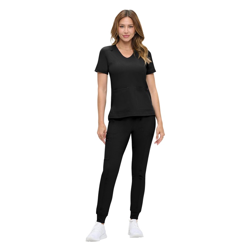 Natural Uniforms Womens Ultra-Soft Luxe Stretch Jogger Scrub Set with Regular and Petite Sizes (Black, X-Small-Petite)
