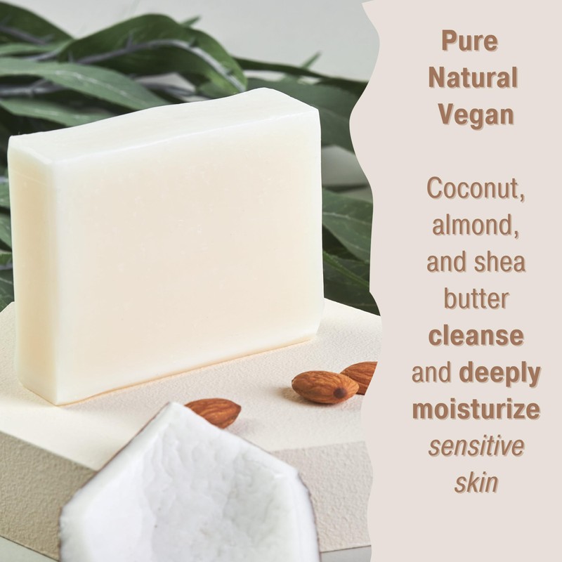 Natural Unscented Soap for Sensitive Skin - Vegan Handmade Soap with Coconut, Almond, and Shea Butter - Moisturizing, Gentle, and Fragrance-Free for Women and Men.