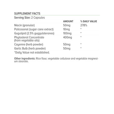 It contains a very large number of plant sterols, niacin, garlic bulb and two special herbs that help maintain normal cholesterol.