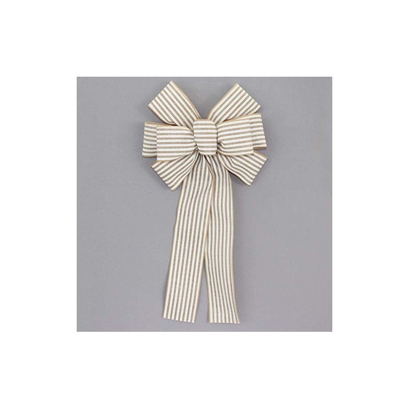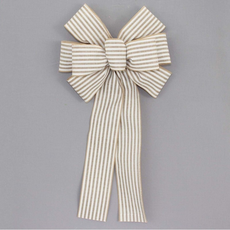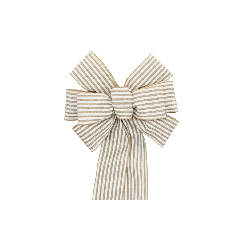 Natural White Cabana Stripe Rustic Wreath Bow (8 inch bow)