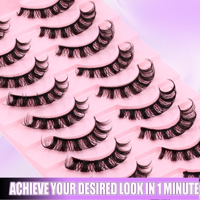 Natural Wispy Cluster Lashes 10 Pairs Individual DIY Short Lash Strips Cat Eye Full Strip Lash Multipack (10 Pairs-DH06-02)