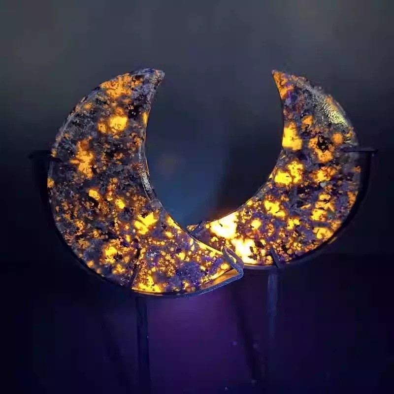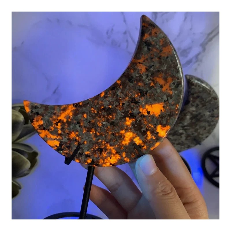 Natural Yooperlite Crystal Moon Carving - UV Reactive Flame Moon Quartz Figurine