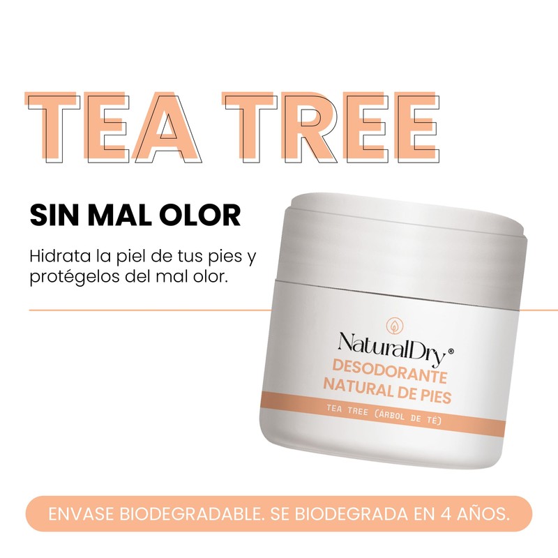 - NaturalDry - Desodorante para PIES - 100% Natural - NO TE DEJA BLANCO LOS CALCETINES - SIN TALCO- Elimina el mal olor - Usalo con flats, para hacer ejercio, funciona -Tiene aceite esencial de Tea Trea